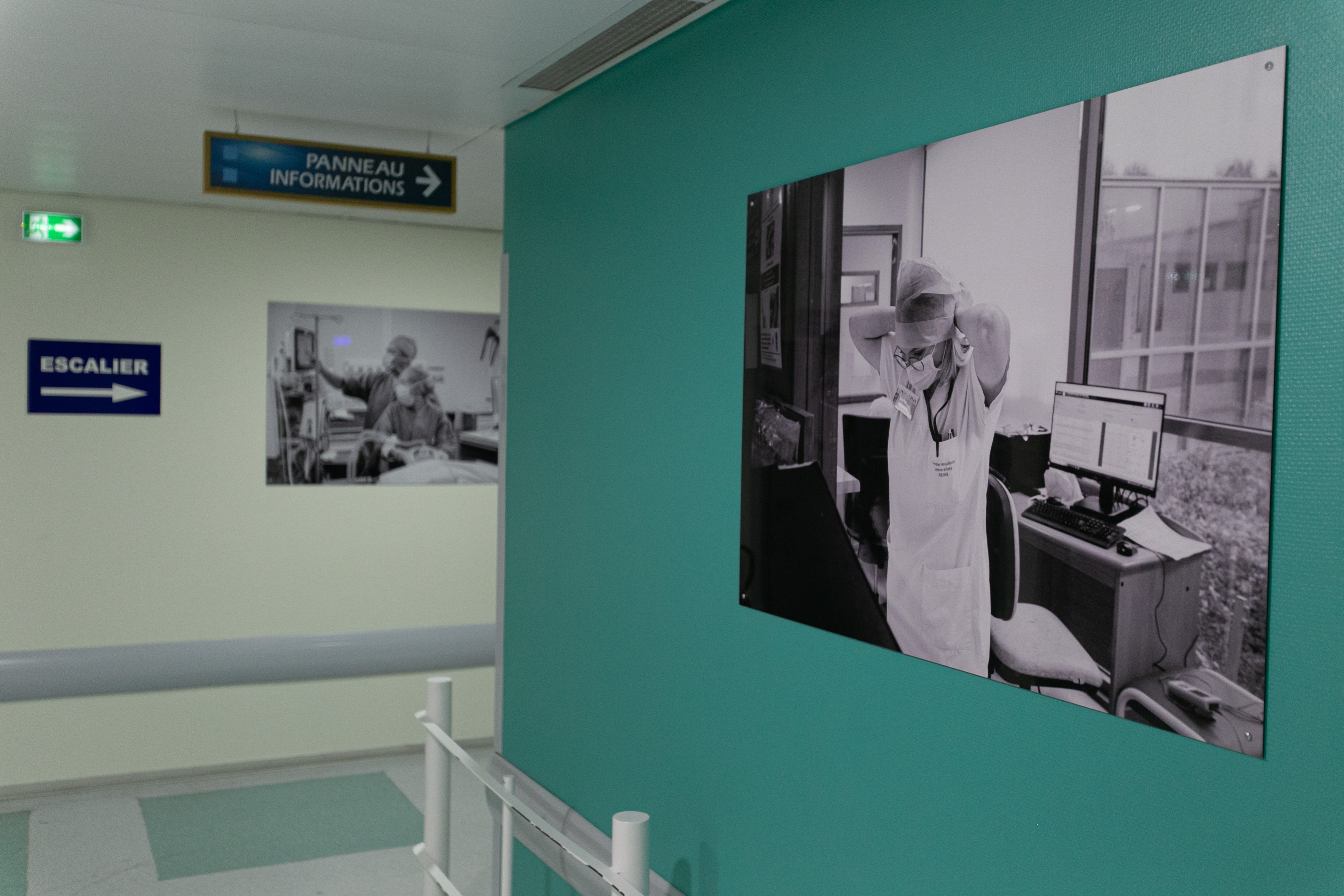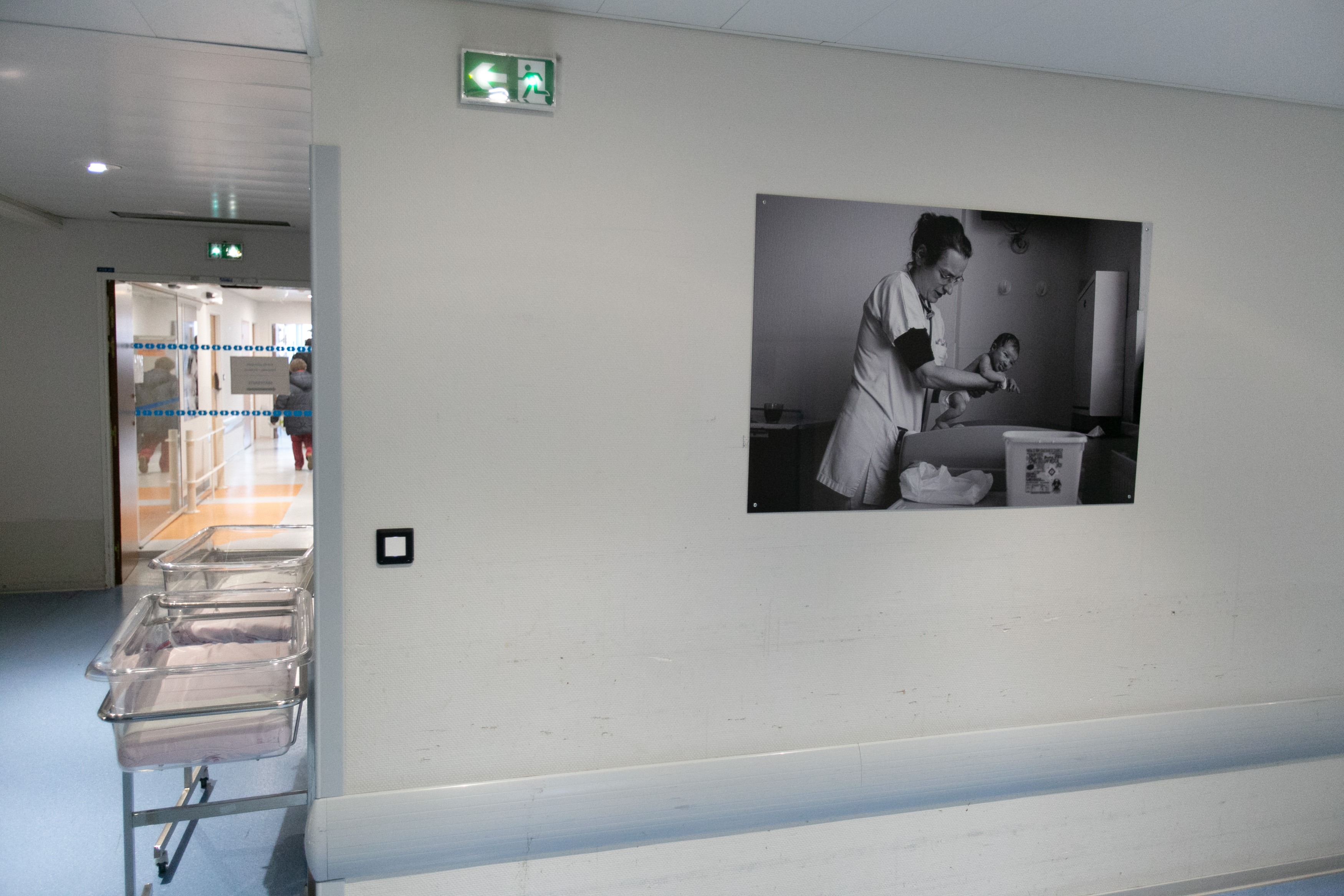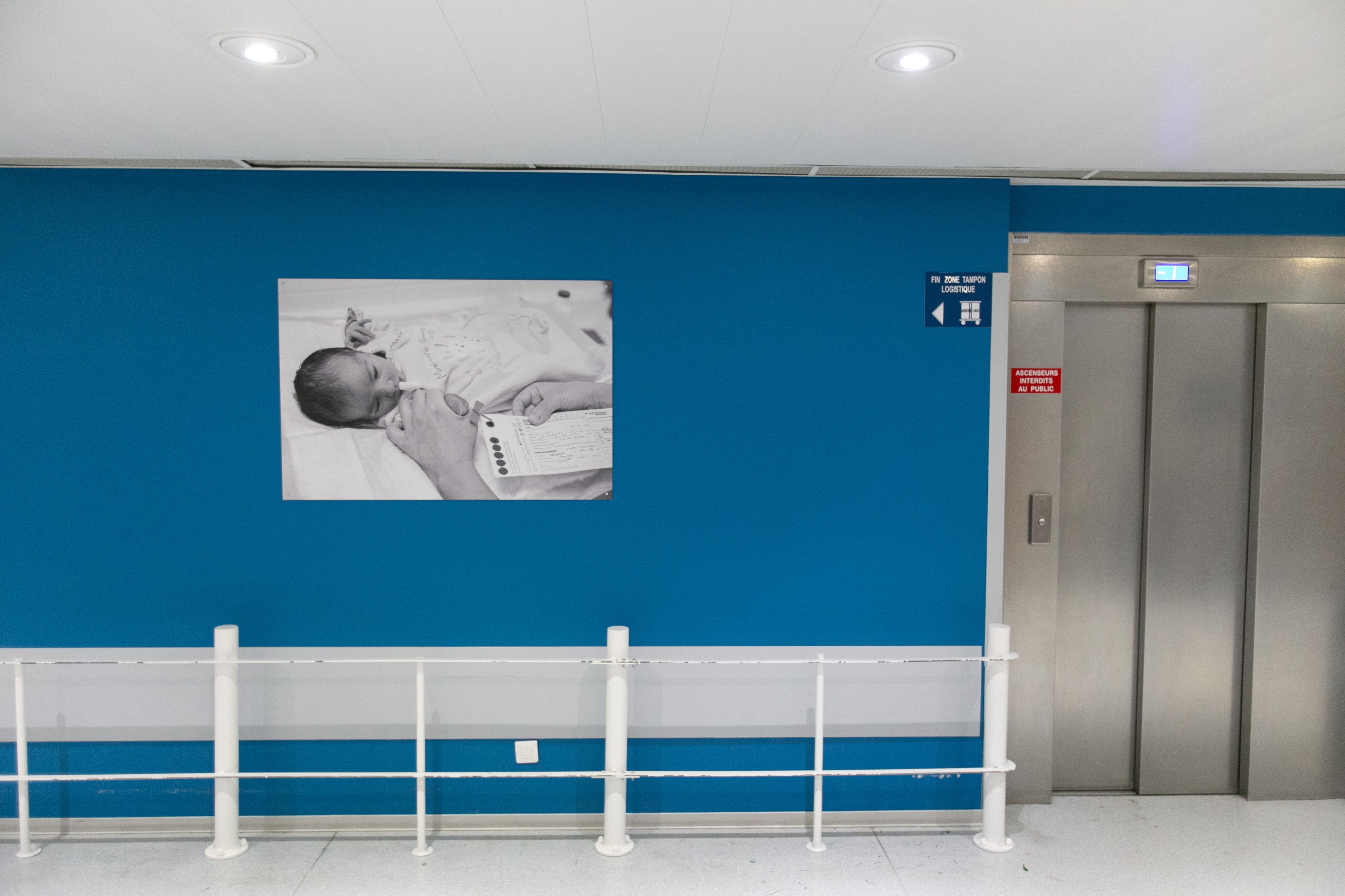 L’ensemble des locaux du service gynéco-obstétrique venait d’être rénové et les murs désormais vierges de toute décoration, ont accueilli les photos en Noir & Blanc de chacune des unités du service. En très grand format (120x80cm) et adapté aux contraintes d’un hôpital, elles apportent aux lieux, une atmosphère apaisante et didactique pour les patients et le personnel soignant. Ce reportage a aussi fait l’objet d’un livre, tiré à 400 exemplaires.