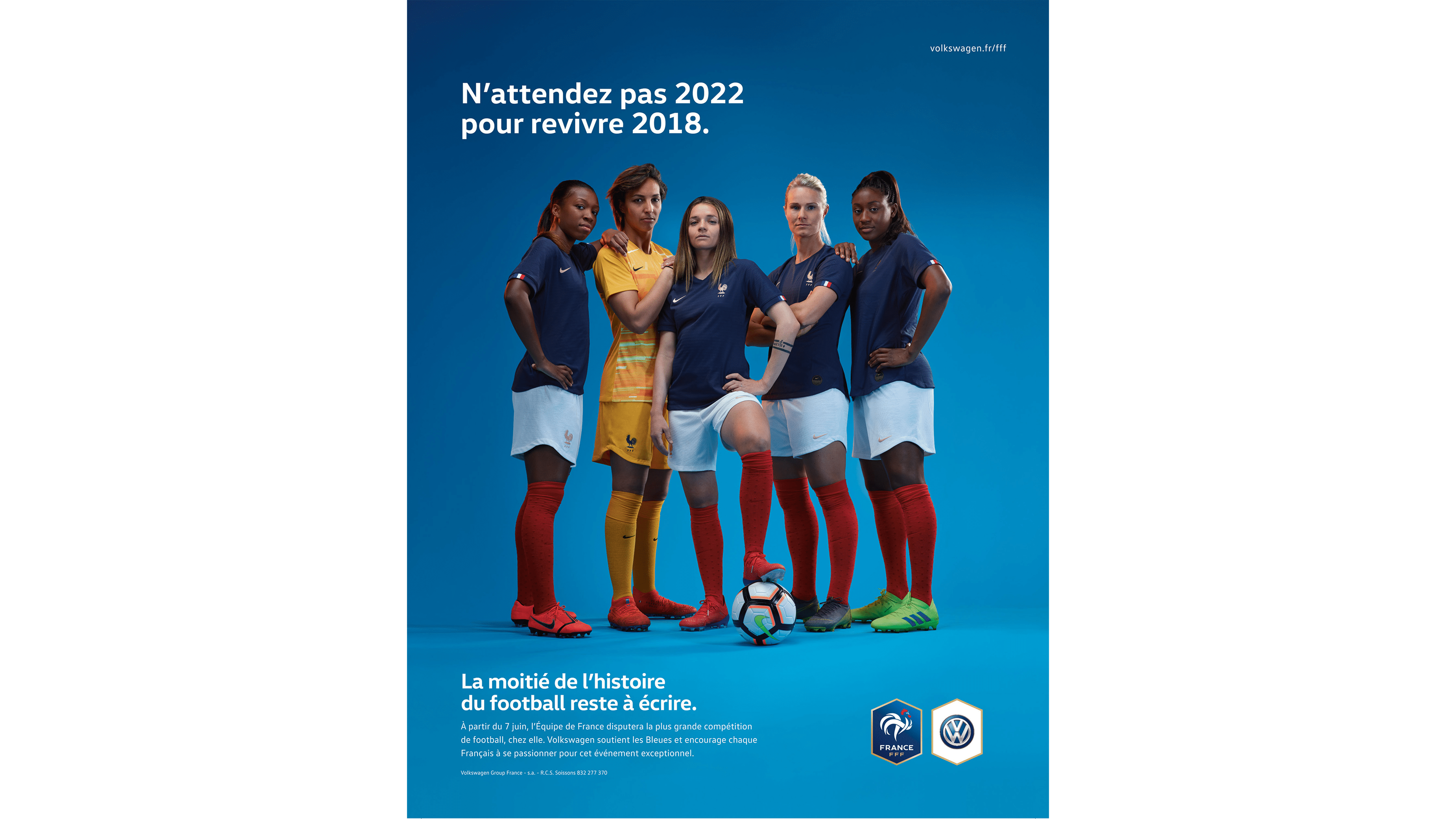 Production de visuels pour une campagne Print et Gif de Volkswagen, sponsor officiel de l’équipe de France féminine de football, dans le cadre de la coupe du monde.