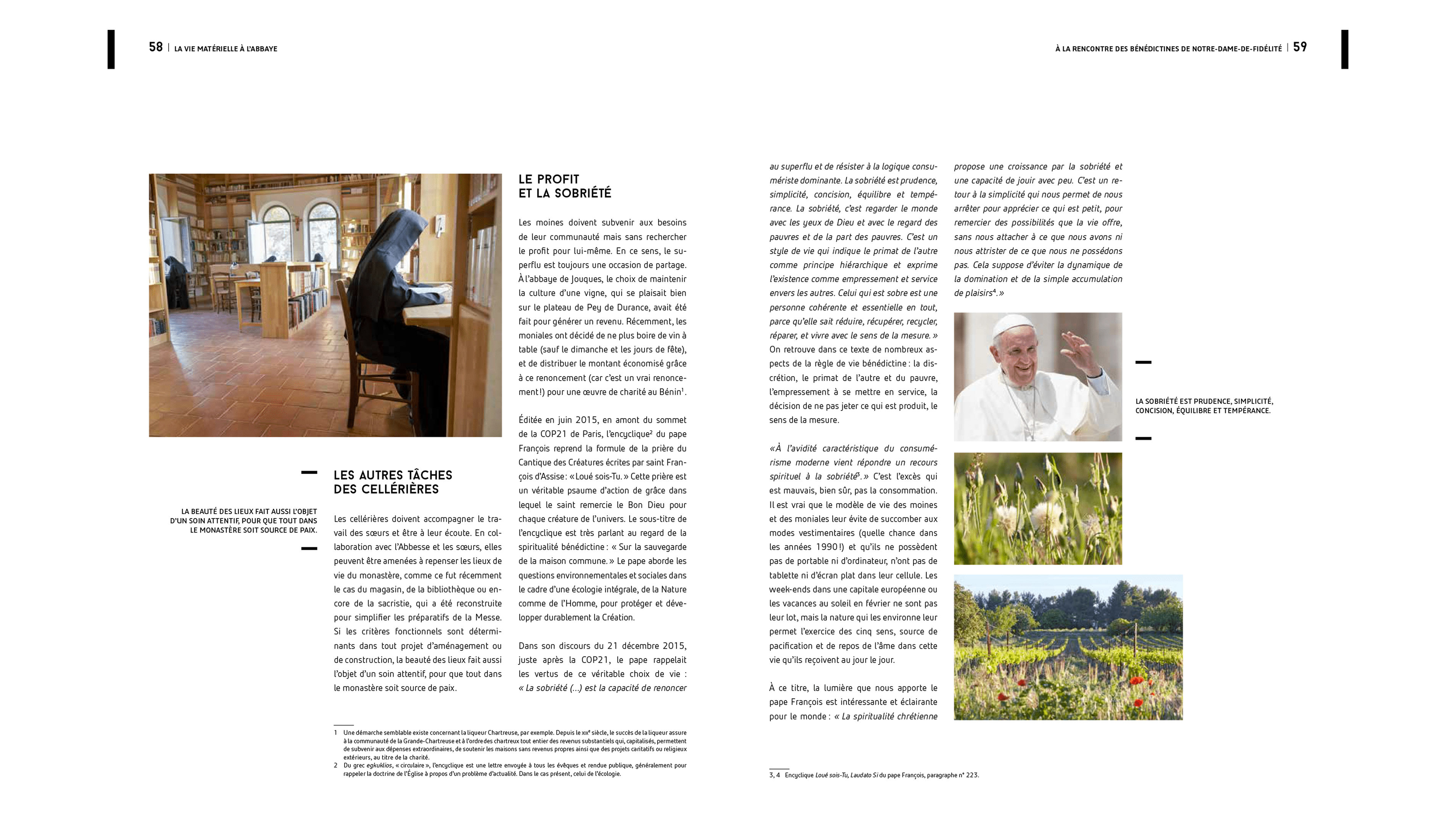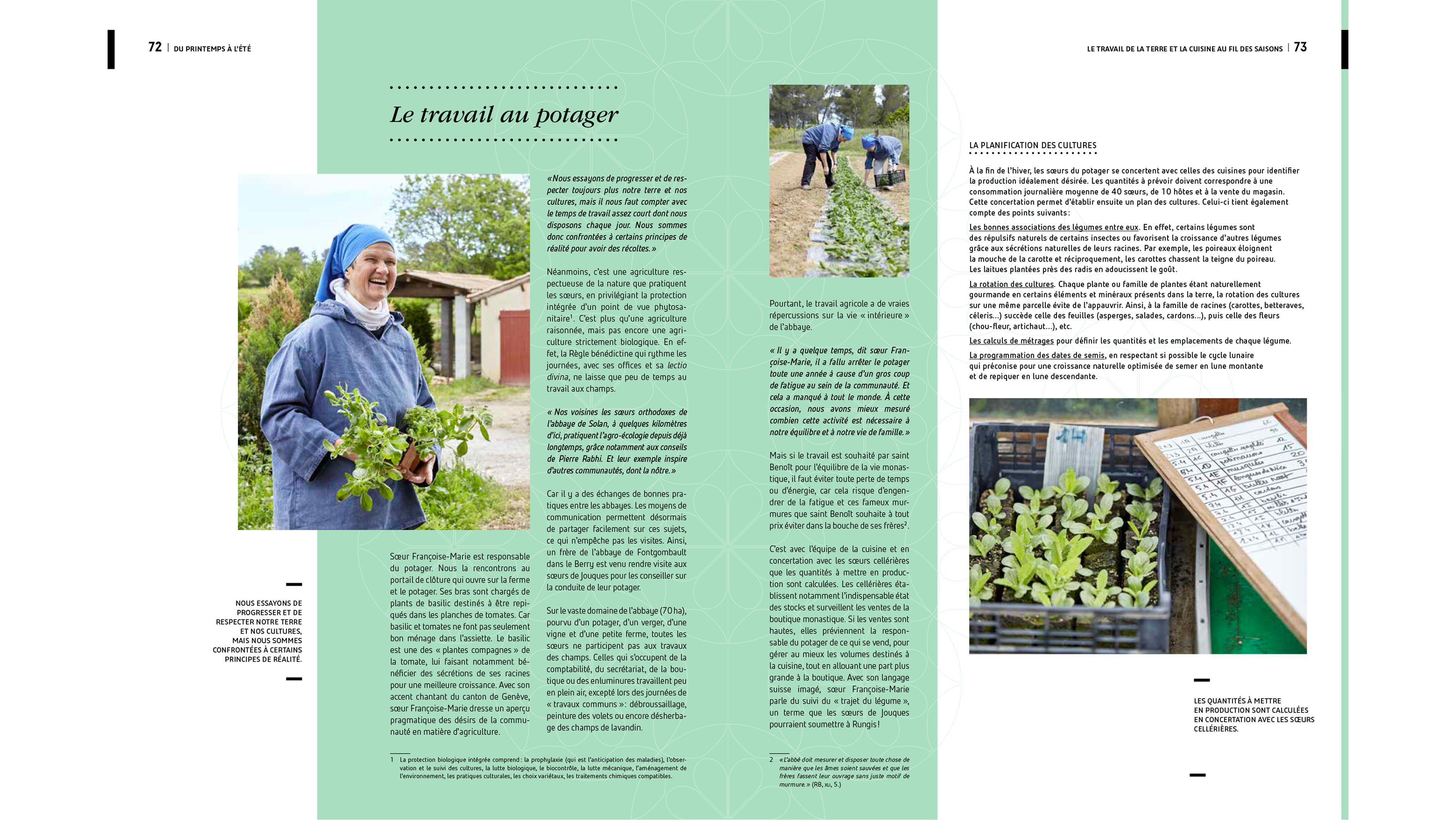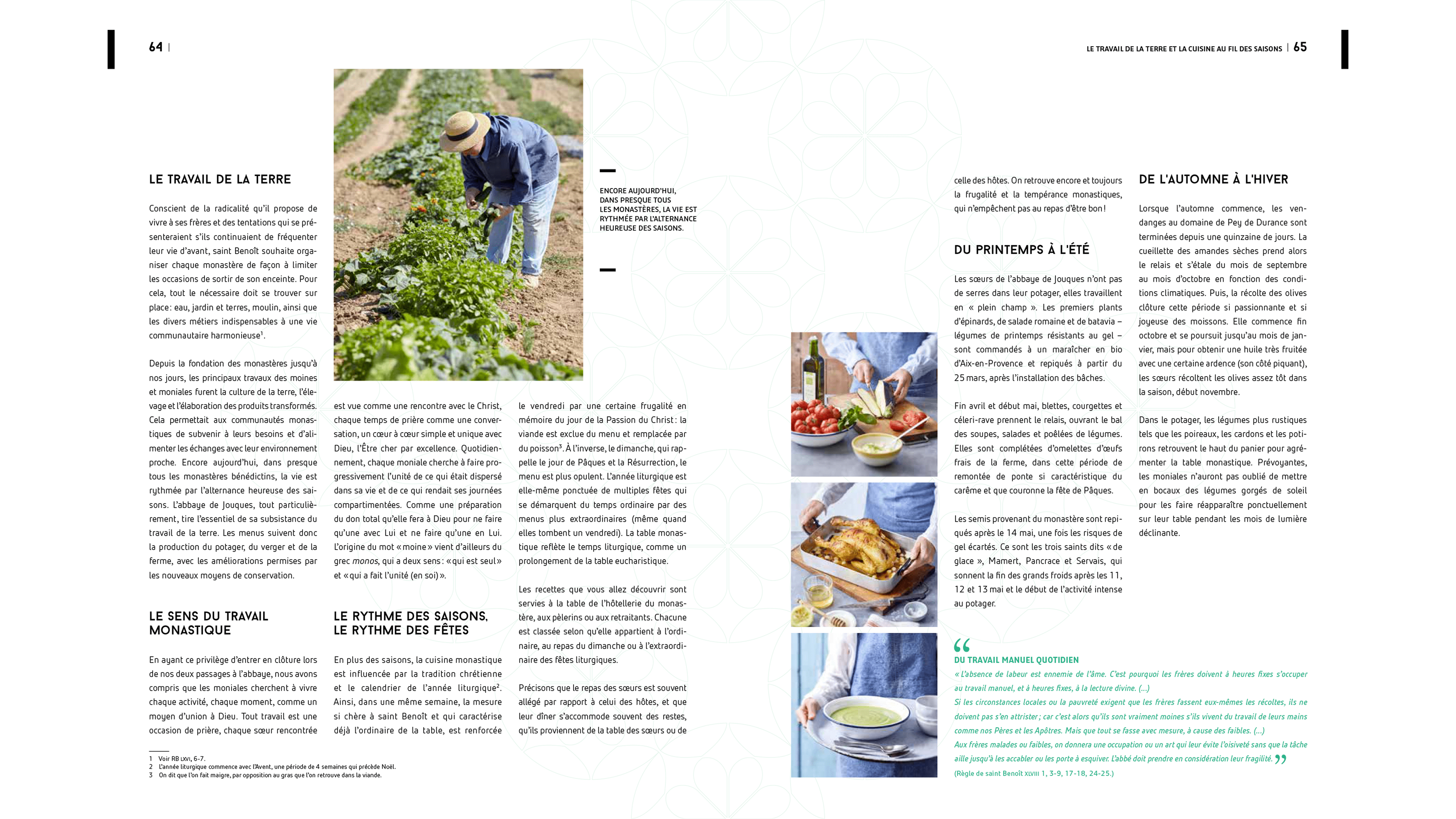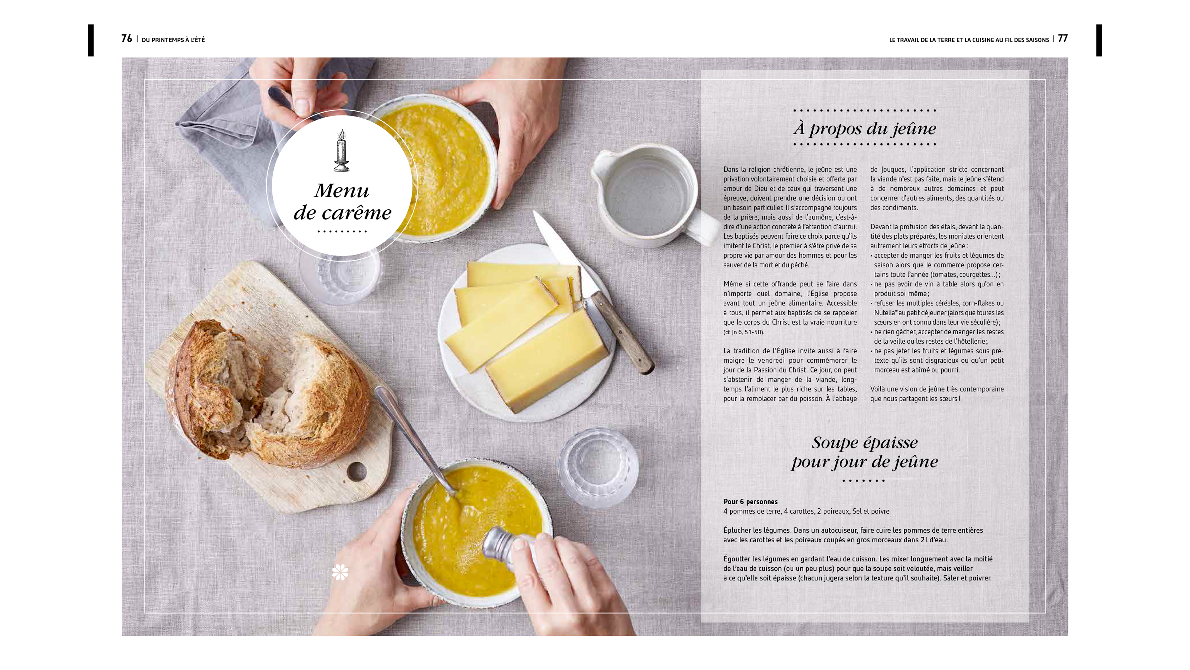 En revanche, c’est un livre sur la sobriété au sens large, qu’elle soit dans la parole, les rapports au monde, le travail ou la nourriture, qu’Ambroise Touvet a proposé en retour. Profitant de la chance immense qu’offraient les sœurs bénédictines de Jouques, de passer de l’autre côté de la clôture. Et cela accompagné d’un photographe et d’une styliste culinaire.