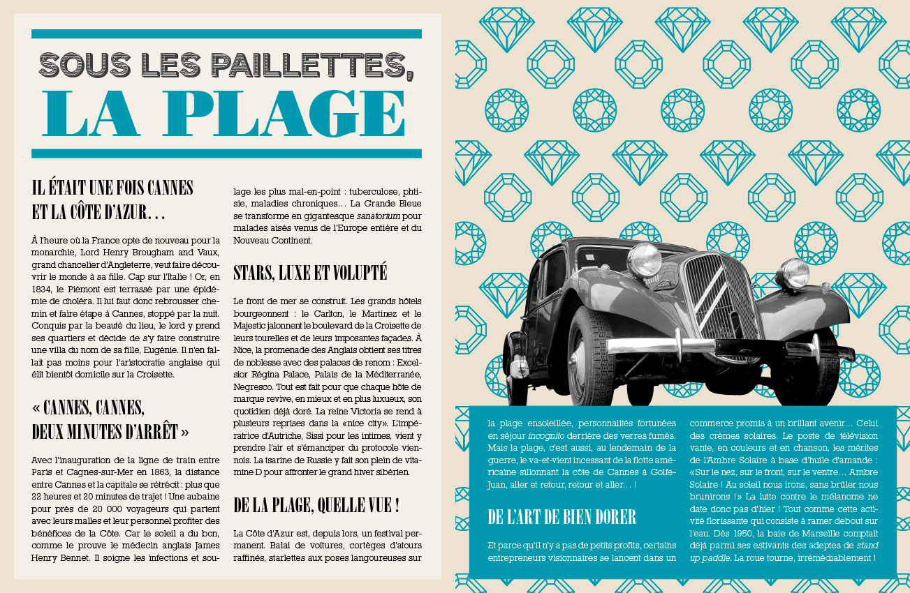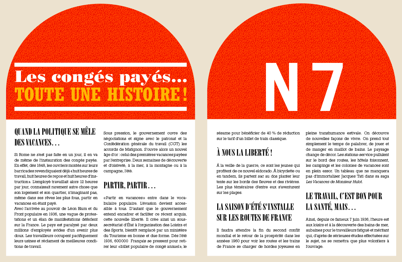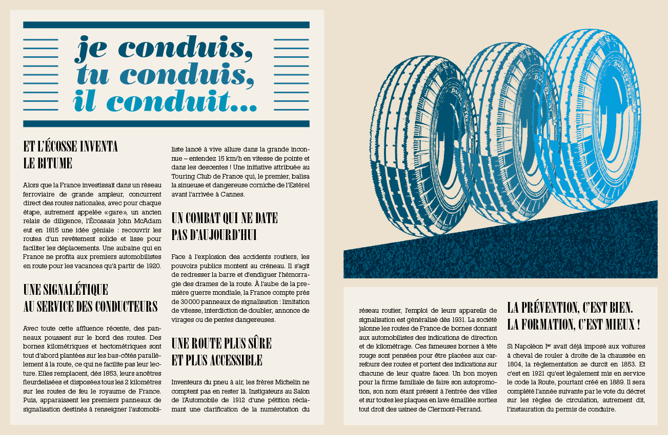 C’est l’histoire des congés payés, de l’été, de la transhumance estivale et de tout ce qui fleurira autour d’elle : l’aménagement des routes, l’apparition de la signalisation, des cartes, de la publicité peinte, etc.